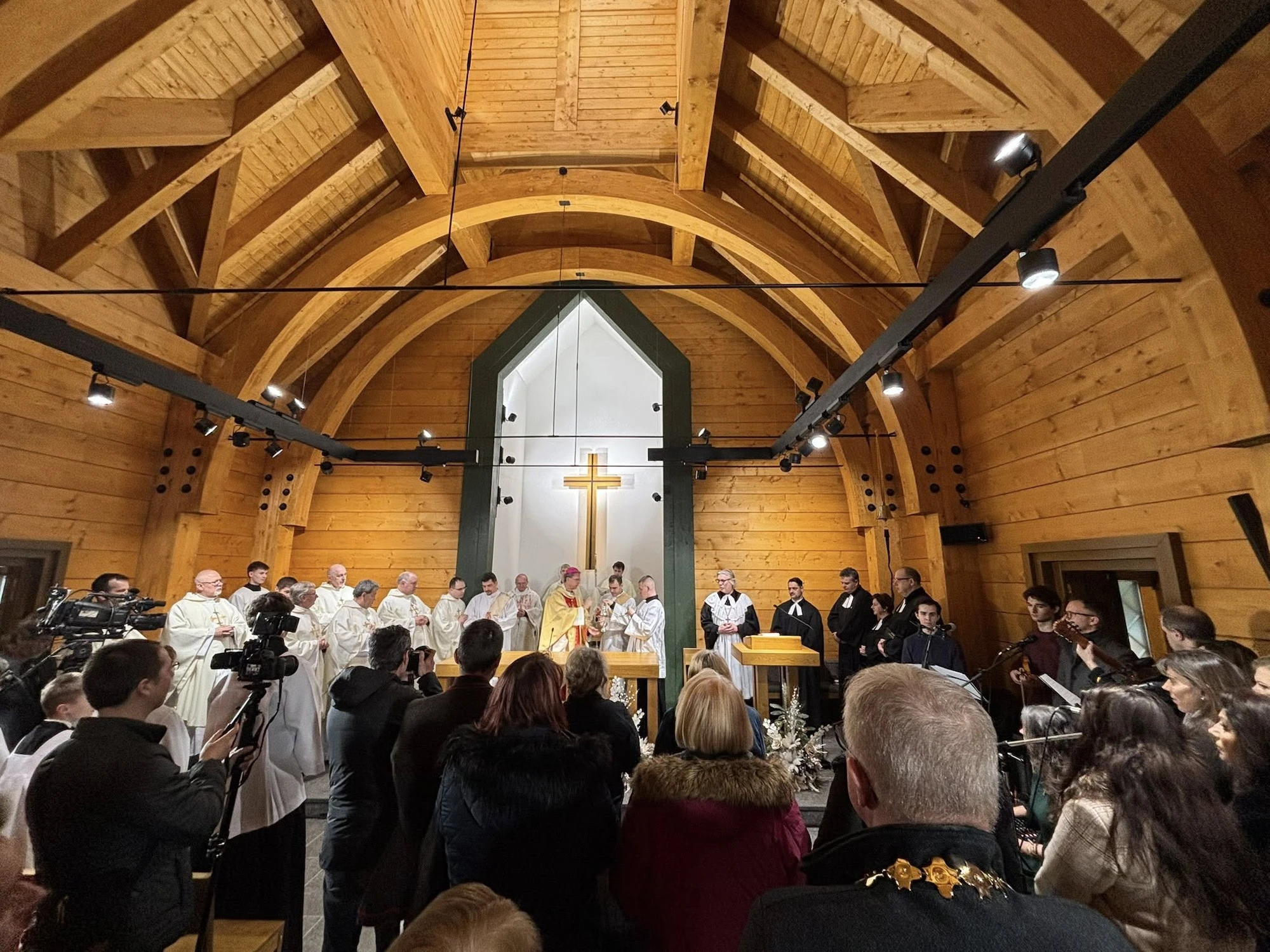 Slávnostné požehnanie sprevádzala svätá omša, ktorú celebroval spišský diecézny biskup František Trstenský. Vo svojom príhovore zdôraznil, že chrám nemá byť len ďalšou budovou v doline, ale miestom pokoja, modlitby a jednoty. „Ekumenický charakter kostola nás učí, že pred Bohom nestojíme ako súperi, ale ako bratia a sestry,“ povedal spišský diecézny biskup František Trstenský v homílii počas slávnostného požehnania kostola. Význam ekumenického rozmeru vyzdvihol aj generálny biskup Evanjelickej cirkvi augsburského vyznania Ivan Eľko. Podľa jeho slov ide o výnimočný projekt, aký na Slovensku takmer nemá obdobu.
