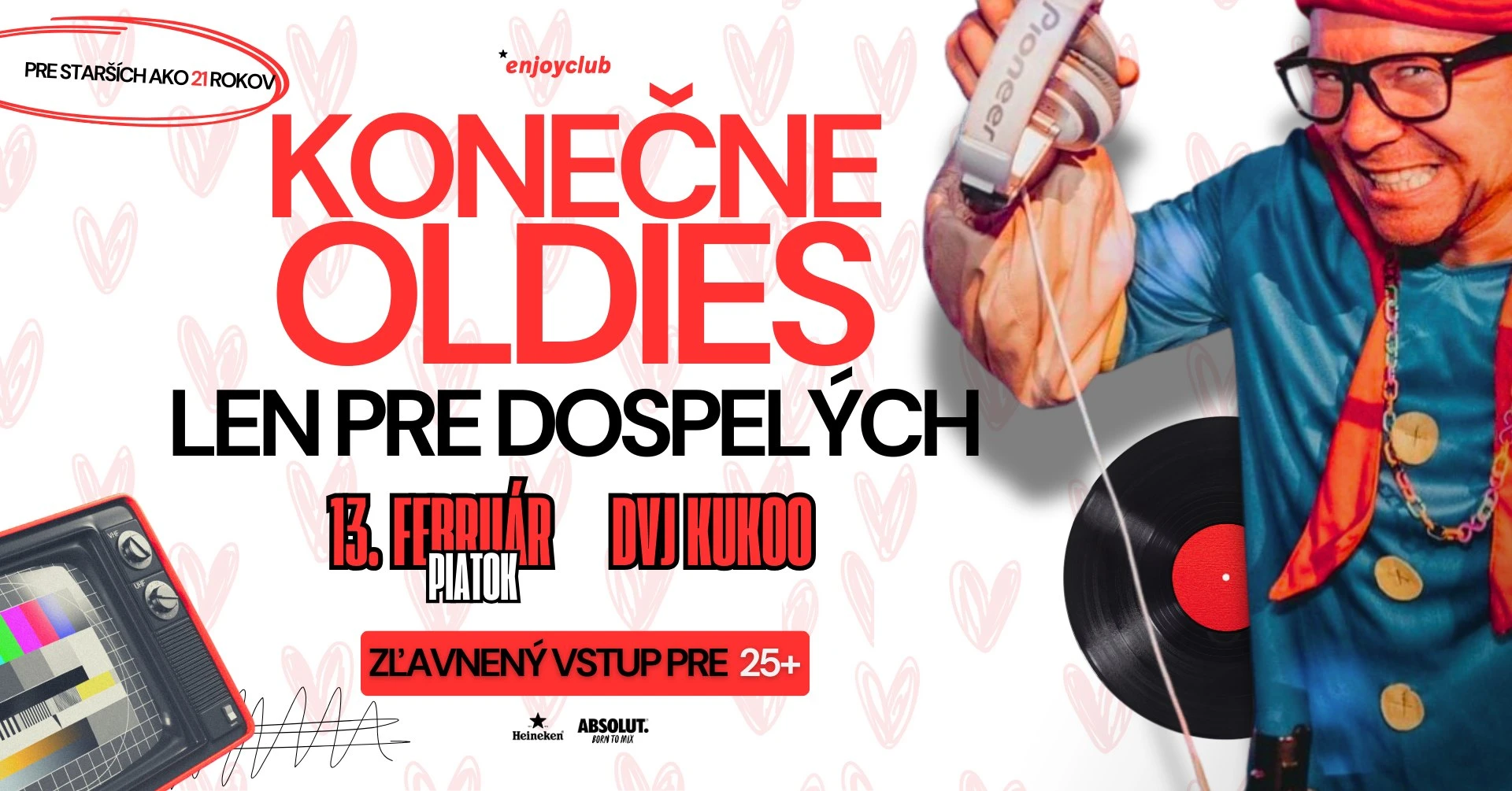Ak si chcete zatancovať, no romantiku nechávate bokom, v Enjoy Clube sa chystá videooldies párty pre dospelých. DJ Kukoo zahrá hity od 60. rokov až po súčasnosť a všetky skladby budú doplnené videoklipmi premietanými na 3D stene a projektoroch. Vstup je od 21 rokov, návštevníci starší ako 25 rokov majú do 23:00 hod. zvýhodnené vstupné.