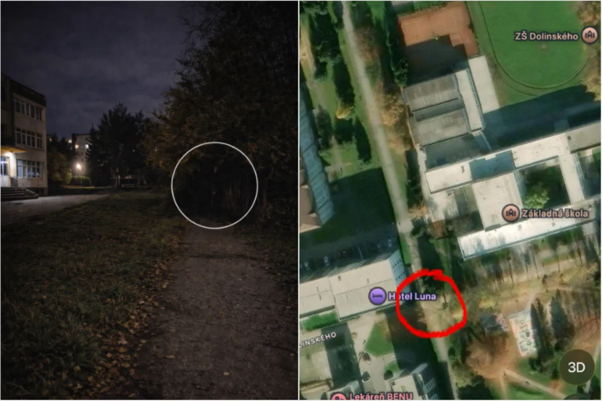 Podľa jeho slov sa muž zdržiava v zakrúžkovanej časti medzi 18:30 až 21:30, niekedy aj dlhšie, a to už niekoľko týždňov. „Stojí pod stromami mimo osvetlenú časť. Keď ide človek sám po tme, pomyslí si čokoľvek,“ napísal autork príspevku s tým, že lokalitou prechádza aj množstvo detí.