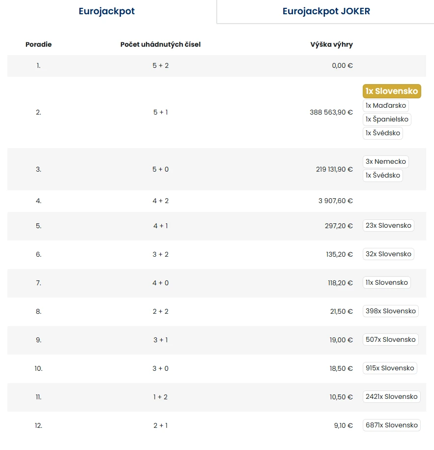 Slovenský tipér vyhral takmer 400-tisíc eur v Eurojackpote, čo je jedna z najväčších výhier roka na Slovensku.