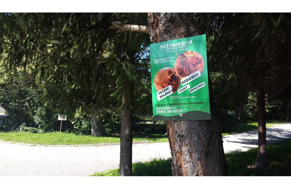 Reklamy na reštauráciu v Zbyňove sú priskrutkované k stromom v Žiline