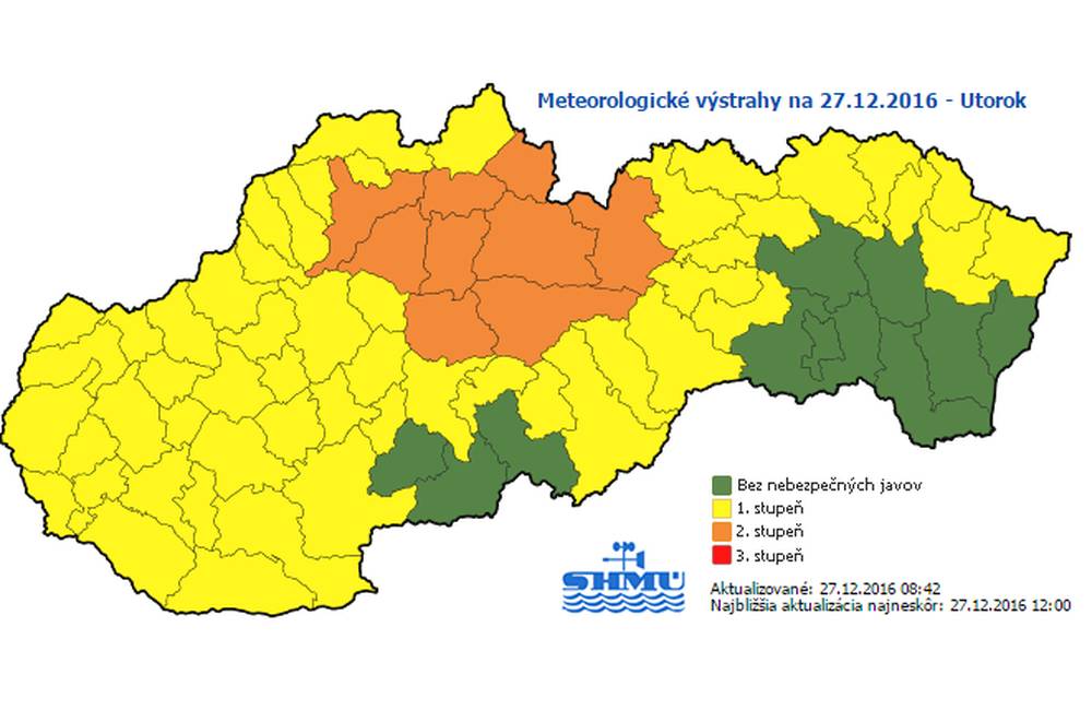 Slovenský hydrometeorologický ústav vydal pre okres Žilina nasledujúce výstrahy.