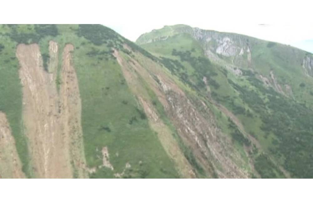 Letecký záber z Vrátnej doliny - z kopcov strhlo povrchové vrstvy