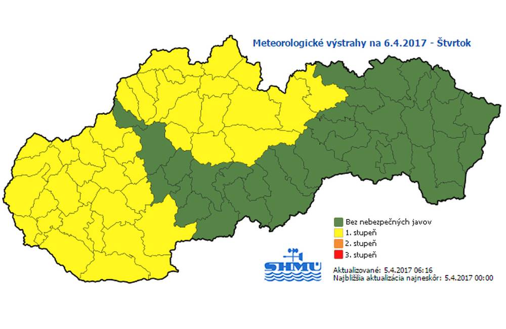 Výstraha má 1. stupeň a je platná od 6.4.2017 20:00 do 7.4.2017 20:00