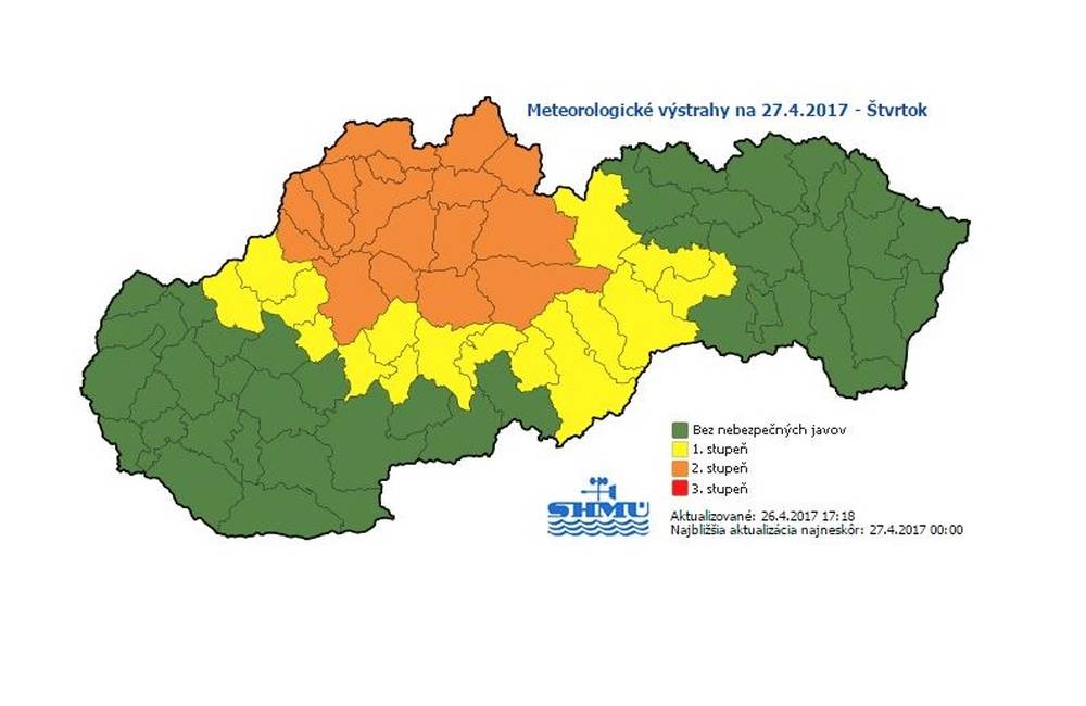 Trvanie výstrahy: od 27.04.2017 12:00 do 29.04.2017 12:00