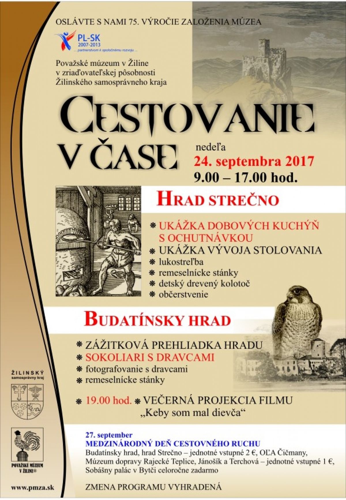 Považské múzeum v Žiline pripravilo pre svojich návštevníkov pri príležitosti Medzinárodného dňa cestovného ruchu atraktívne nedeľné podujatia na svojich dvoch hradoch. Pozývame vás na Cestovanie v čase na hrade Strečno i na Budatínskom hrade v nedeľu 24. septembra 2017.