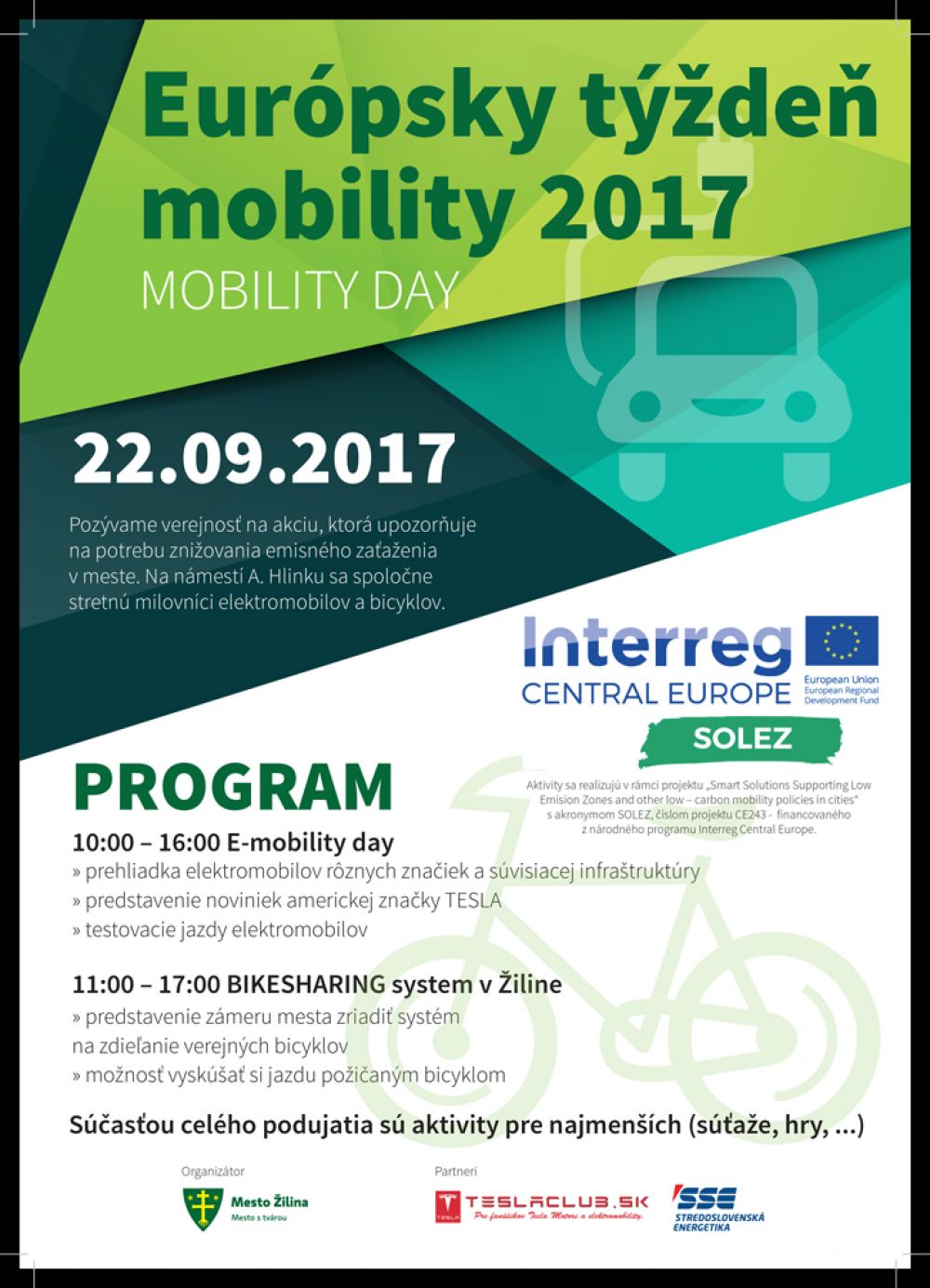 V nadväznosti na túto tému pripravilo mesto Žilina pre návštevníkov prezentáciu elektromobilov rôznych značiek či predstavenie zámeru mesta zriadiť systém na zdieľanie verejných bicyklov. Pri tejto príležitosti si bude môcť verejnosť vyskúšať jazdu požičaným bicyklom či jazdu v elektromobile. Súčasťou celého podujatia sú aj zaujímavé aktivity pre najmenších.