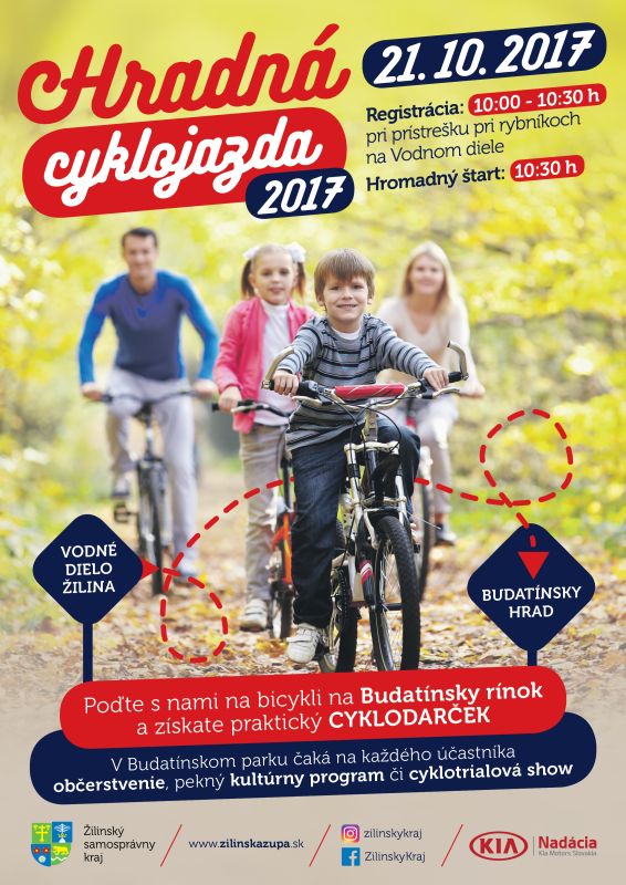 V sobotu 21. októbra 2017 ukončí Žilinská župa úspešnú cyklosezónu na jednej z najobľúbenejších cyklotrás. BikeKIA spájajúca hrady Strečno a Budatín prevezie účastníkov Hradnej cyklojazdy z Vodného diela až do Budatínskeho parku.