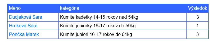 V osemčlennej konkurencii si mladá Žilinčanka počínala opäť najlepšie a titul v Kumite juniorky do 59 kilogramov zostáva v Žiline. Titul doplnili bronzovými medailami pretekári Marek Pončka v kategórii Kumite juniori do 61 kilogramov a Sara Dudjaková v Kumite kadetky nad 54 kilogramov. Všetkým medialistom gratulujeme.