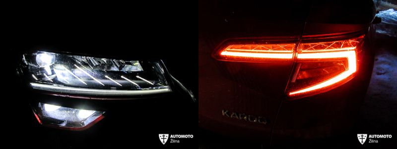 Už spomínané tri samostatné príplatkové sedadlá VarioFlex ocenia predovšetkým deti. Takáto konfigurácia povoľuje vskutku pestrú škálu preferovného nastavenia. Samozrejmosťou je samostatné posúvanie sedadiel, ako aj individuálna regulácia nastavenia sklonu operadla. Škoda Karoq nesklamala ani vzhľadom na bohatú výbavu. Testovaná verzia vo výbave Style disponuje napr.: full LED prednými svetlometmi s automatickou funkciou regulácie svetelného účinku, LED paketom s ambientným osvetlením interiéru, ako aj efektným vonkajším svetelným kobercom s logom Škoda, bezkľúčovým prístupom a štartovaním, parkovacími senzormi po celom obvode vozidla, parkovacou kamerou, adaptívnym tempomatom, integrovanými úchytmi isofix a podobne.