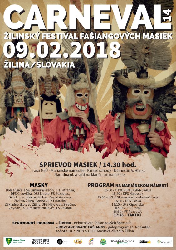 Fašiangové slávnosti sú už predo dvermi a v Žiline nebude ani tento rok chýbať tradičný fašiangový sprievod. Žilinské ulice zaplavia masky z celého Slovenska. Do tanca im zahrajú Taktici a o pravú fašiangovú zábavu sa postarajú folklórne súbory z celého okolia.