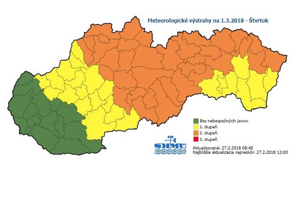 Trvanie výstrahy je od 1.3.2018 - od 00:00 do 09:00 hod.