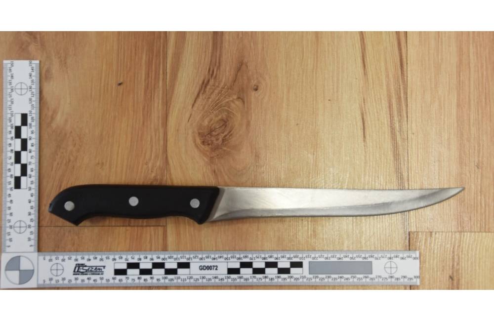 Od ženy počas útoku žiadal, aby na stôl vyložila všetko, čo má vo vrecku. Z obavy o svoj život ho žena poslúchla. Na stôl teda položila krabičku cigariet a balenie kávy. Na ženu začal kričať a zo zadného vrecka vybral kuchynský nôž. Chvíľu ho držal v ruke, potom ho odložil a vzal si veci, ktoré žena položila na stôl.