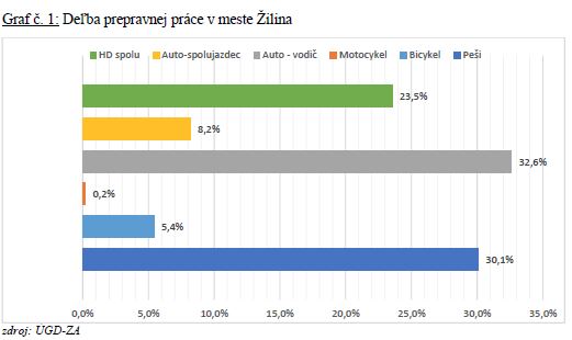 Už dnes totiž cestuje tretina Žilinčanov do práce vlastným automobilom, čo sa podpisuje pod pravidelné zhoršenie dopravnej situácie v centre mesta aj na hlavných ťahoch smerom zo Žiliny. Približne 30 percent obyvateľov chodí do peši.