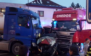 AKTUÁLNE: Vážna nehoda na Košickej, osobné auto skončilo medzi dvomi kamiónmi